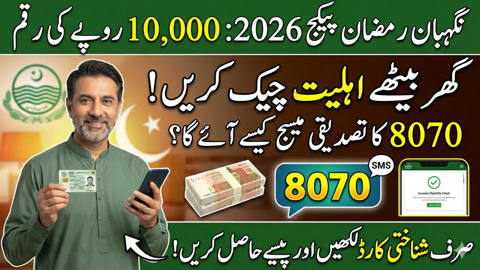 عام طور پر لوگ اس عمل کو “Ramzan Package 10000 Online Check” کے نام سے سرچ کرتے ہیں۔ اگر آپ اہل قرار پاتے ہیں تو آپ کو 8070 سے تصدیقی ایس ایم ایس موصول ہوگا۔ یہ پیغام بہت اہم ہے — اس کے بغیر ادائیگی جاری نہیں کی جائے گی۔