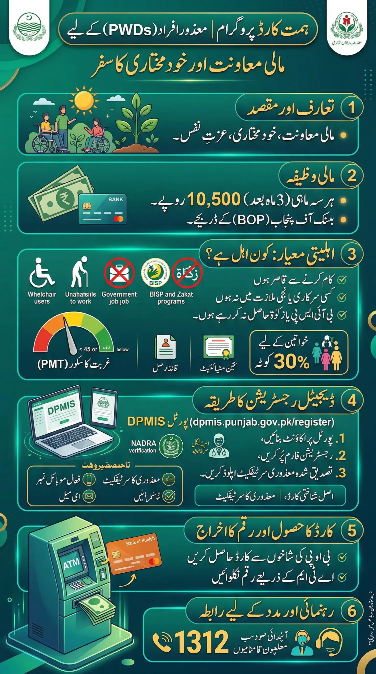 The 1312 Himmat Card Registration Process is an important step toward social protection and inclusion in Punjab. Through the DPMIS Portal, eligible persons with disabilities can now apply online, complete verification, and receive quarterly financial support without unnecessary hurdles.
