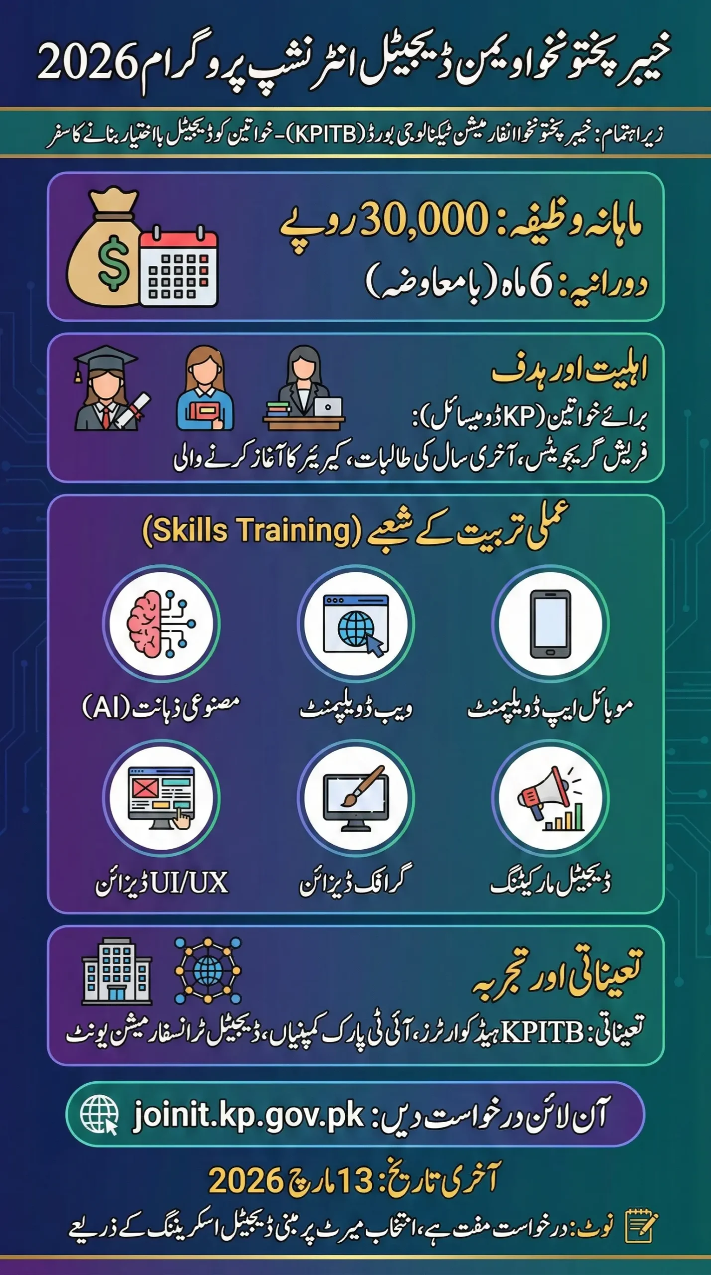 The KPK Women Digital Internship Program is one of the more serious efforts to bring women into Pakistan’s digital workforce with dignity and financial support. With a Rs. 30,000 monthly stipend, real-world tech training, and placements in KP’s IT ecosystem, this opportunity can be life-changing for many young women.