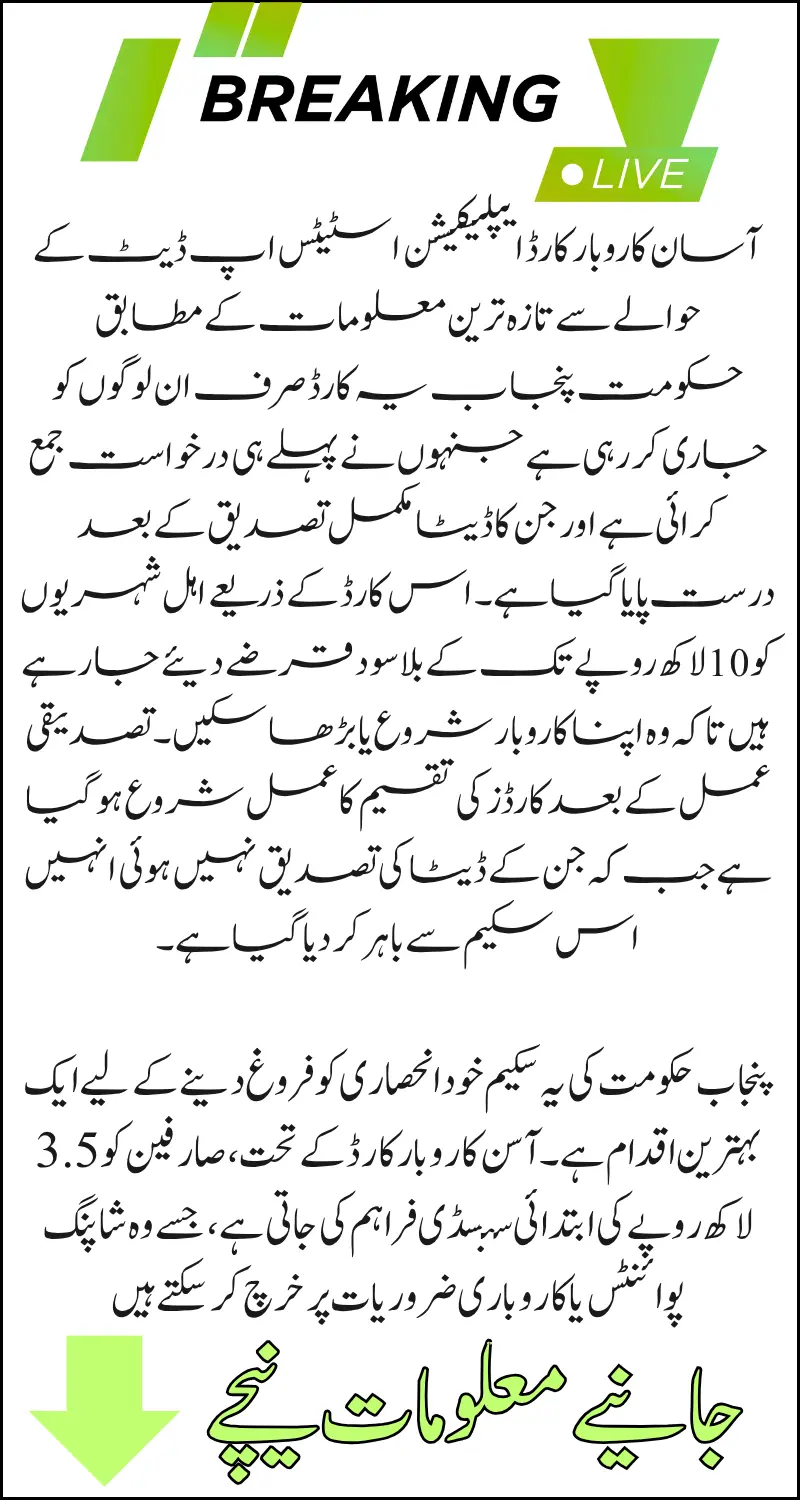Thousands of applicants across Punjab successfully applied for the Asan Karobar Card when registrations were open. According to the latest updates from official sources: