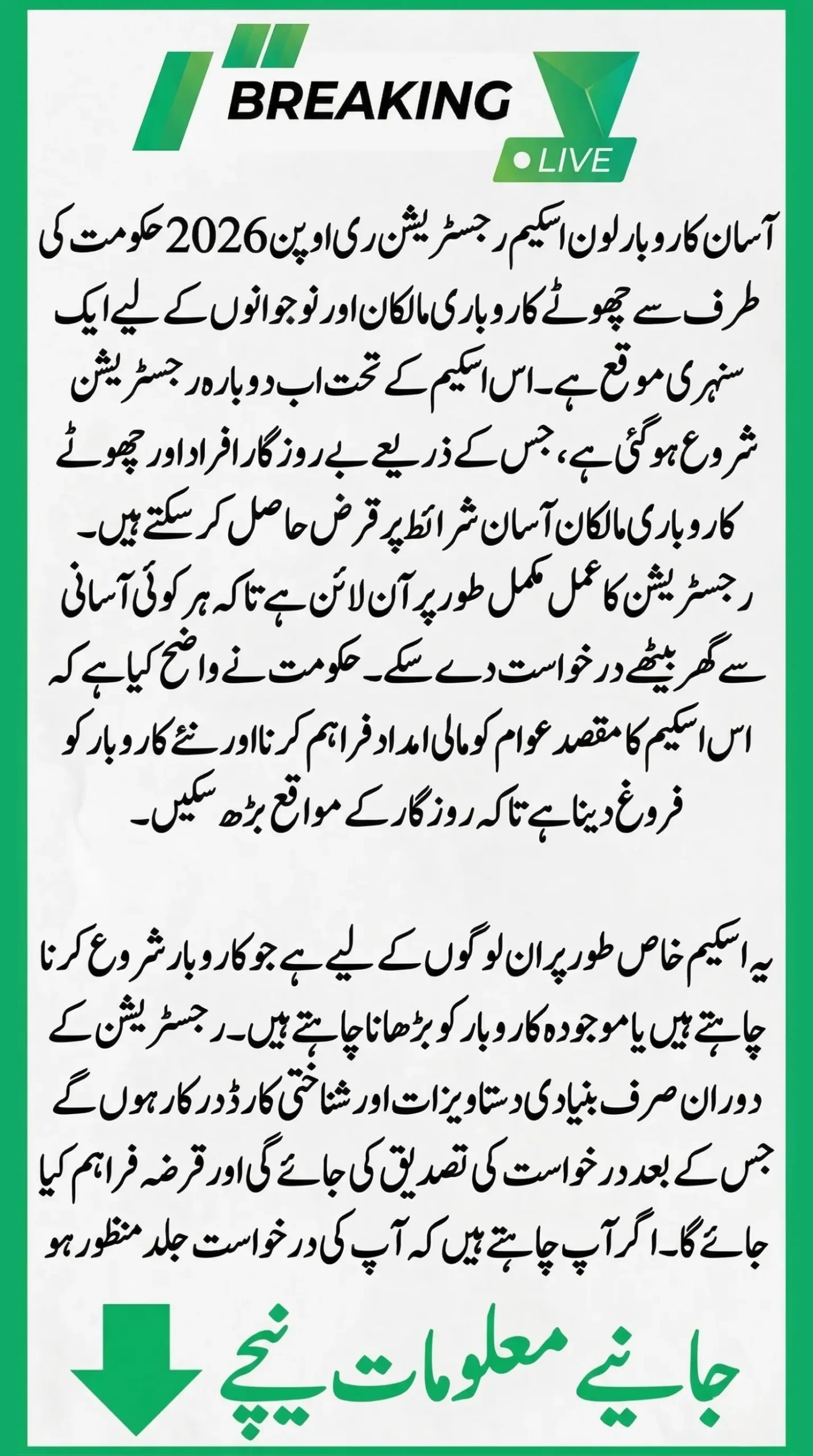 Asan Karobar loan Scheme Registration Reopen Latest Updates