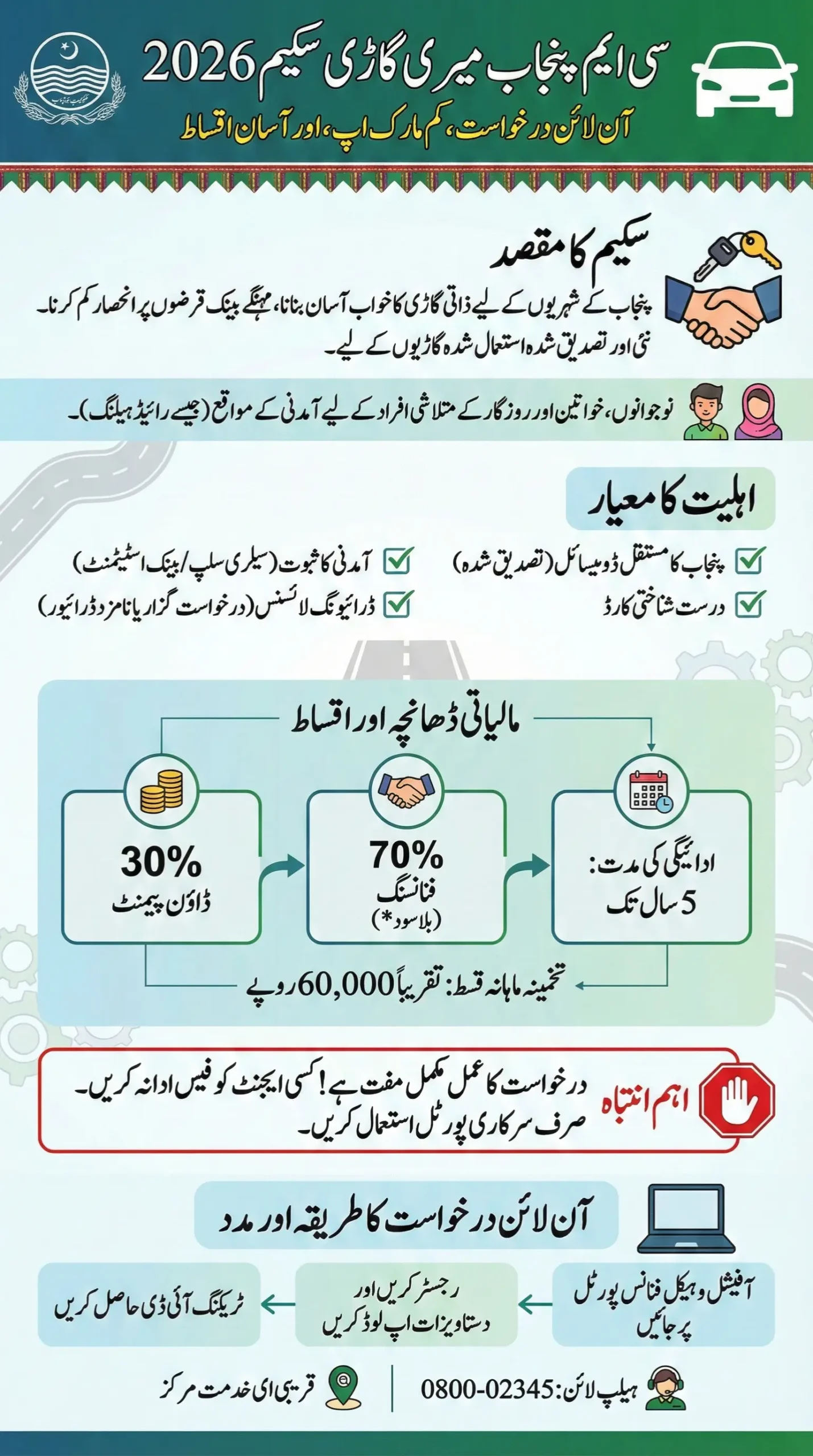 The CM Punjab Meri Gari Scheme 2026 is a government-backed car financing initiative aimed at making vehicle ownership affordable. Instead of expensive commercial auto loans, applicants can apply online and pay in low-markup, long-term installments.