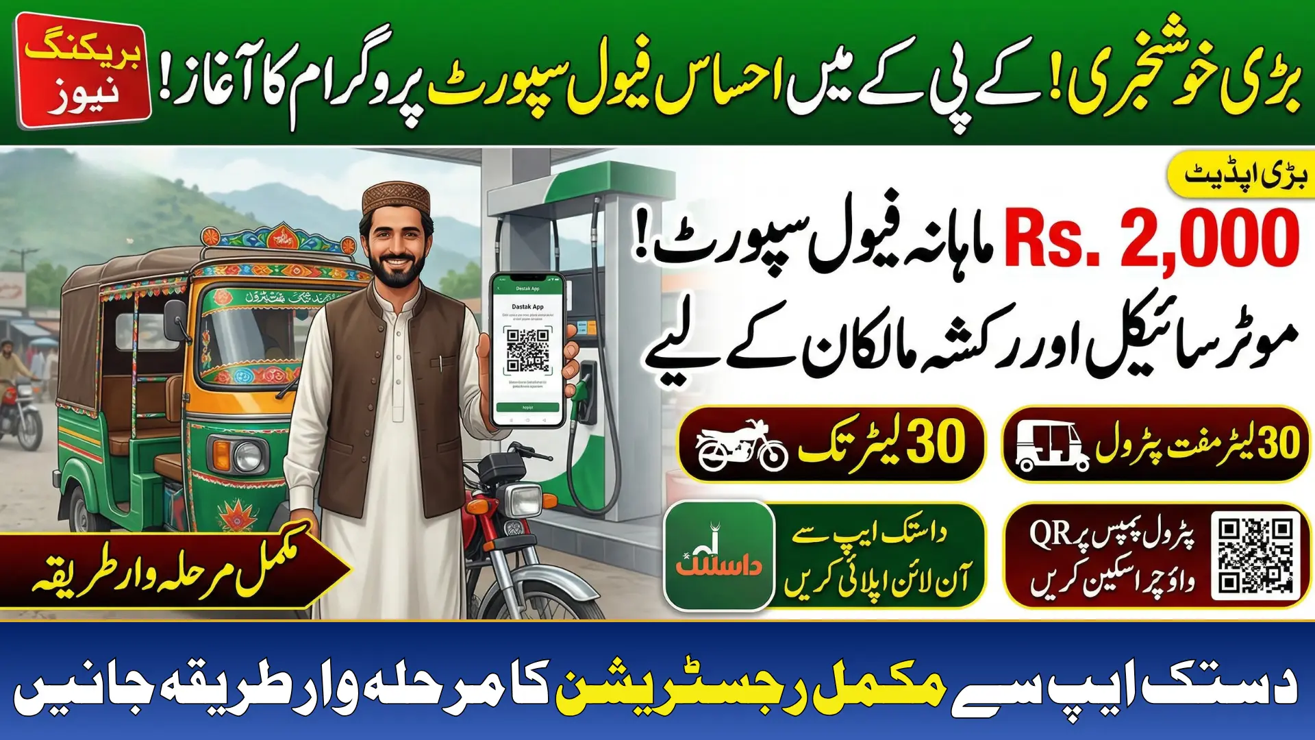Download the Dastak App, keep your CNIC and vehicle documents ready, and submit your application today. Rs. 2,000 in monthly fuel relief is real money for real people. The QR voucher system makes it clean, trackable, and scam-proof. Register free. Get your relief. Start saving.