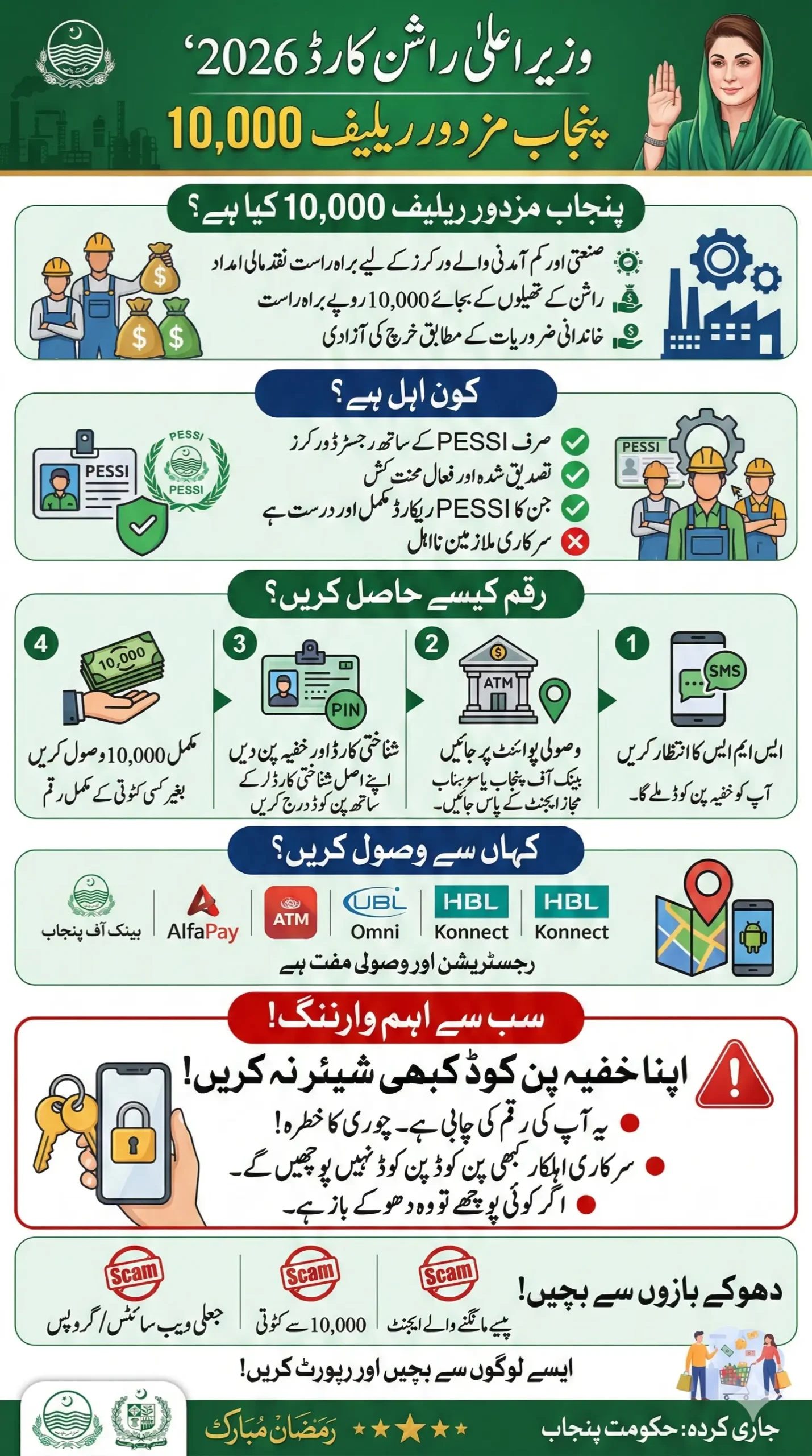 The rules remain the same for Punjab Mazdoor Relief 10,000 never share your PIN.