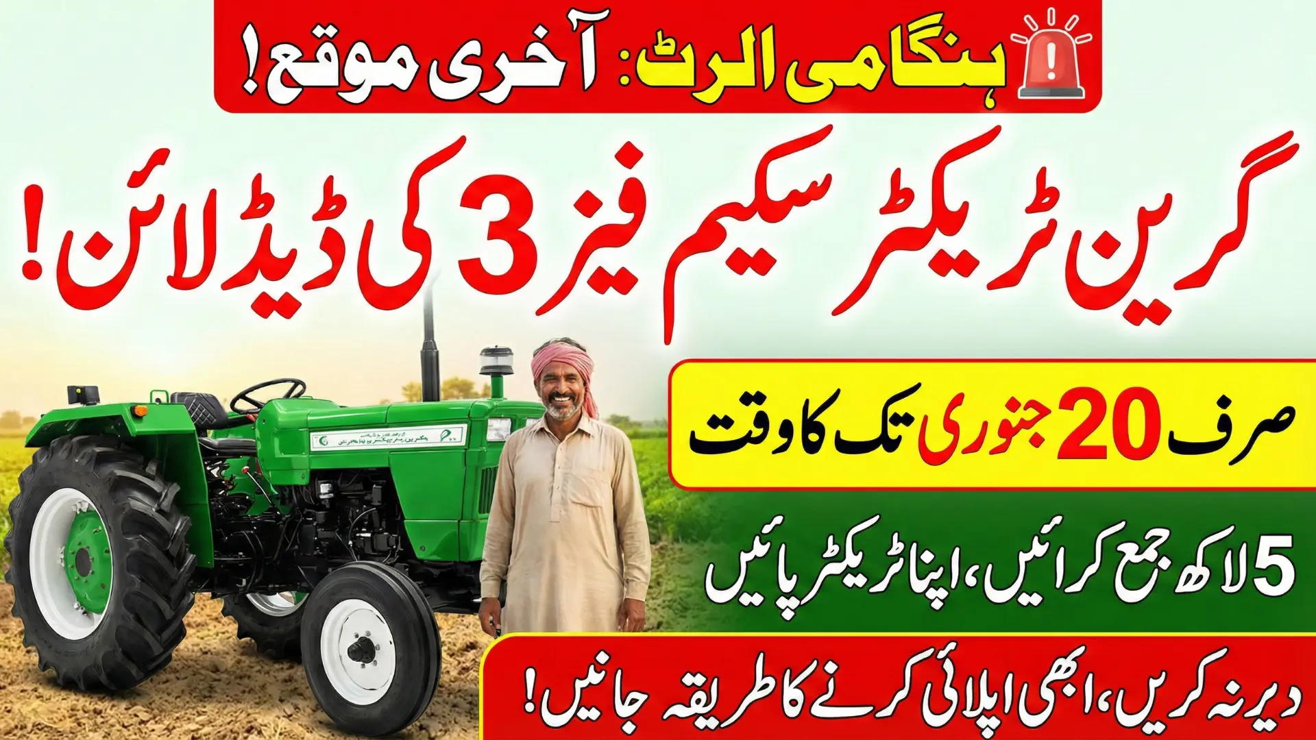 The Green Tractor Scheme Phase 3 last date was announced, and eligible farmers must apply before the 20 January 2026 deadline to avoid missing out. This phase targets genuine Punjab farmers with at least 5 acres of verified land and a valid CNIC. Selection will be through transparent digital balloting after land and field verification.
