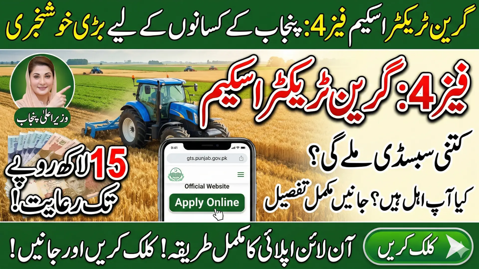 The Green Tractor Scheme Phase 4 Punjab offers farmers a major opportunity to purchase new tractors at subsidized rates. Eligible farmers owning 1 to 50 acres can apply online through the official portal. The government is providing up to Rs. 700,000 subsidy for 50–65 HP tractors and up to Rs. 1.5 million for high-horsepower models.