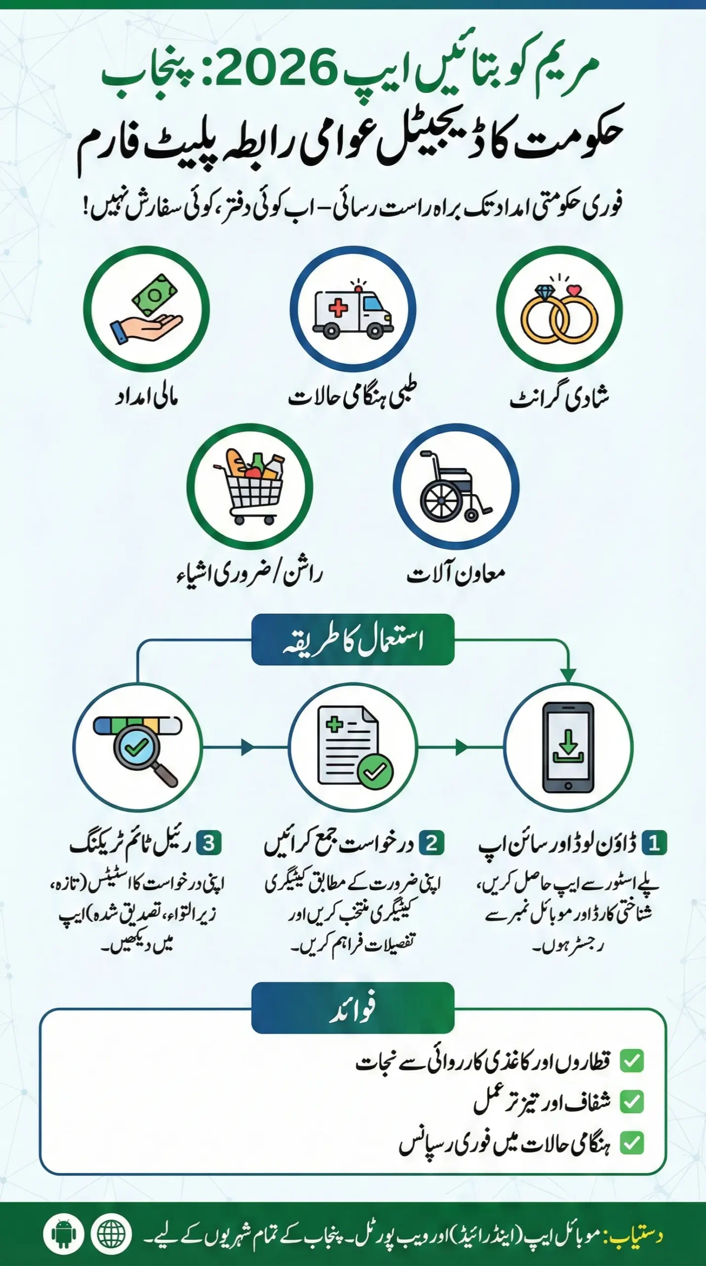 The Punjab government is actively pushing digital access to public support. The maryam ko batain portal app and its web version are being promoted as a direct channel for: