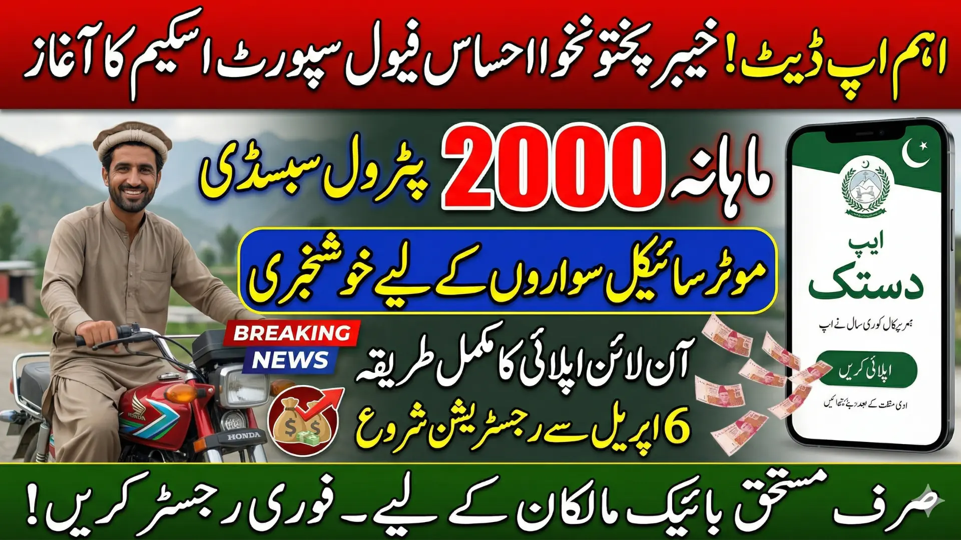 This was a very important decision taken by the Khyber Pakhtunkhwa government, after which every motorcycle rider who has a motorcycle in his name will be provided with a monthly subsidy of Rs. 2,000, which you will be able to get after registering easily. Read this article carefully to know more information and details so that you can easily apply for this subsidy from home and become eligible.