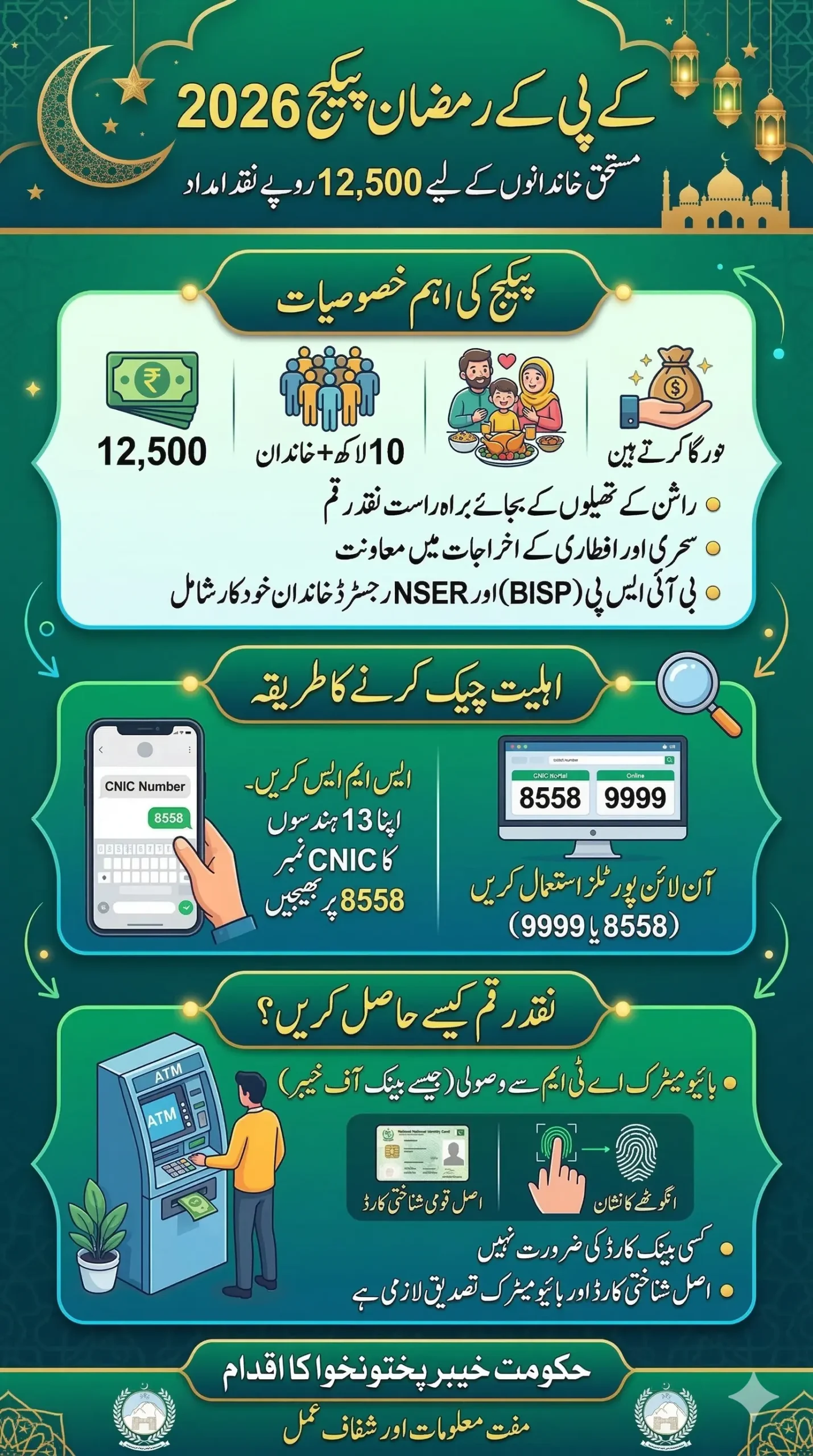 The KPK Ramzan Package 2026 is an important initiative aimed at helping deserving families manage their expenses during the holy month. With simple eligibility checks through online portals or SMS, and easy withdrawal through biometric ATMs.