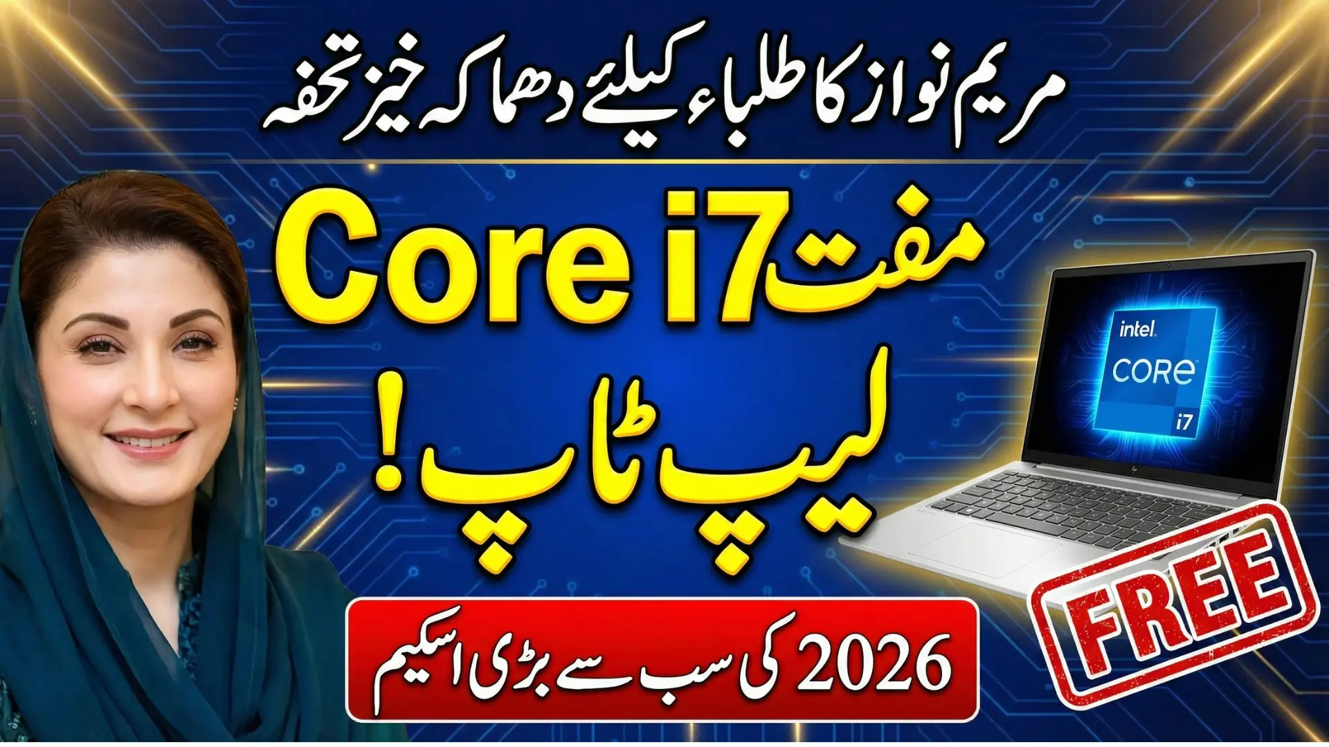 The Maryam Nawaz Laptop Scheme 2026 offers free Core i7 laptops to deserving students across Punjab through a fully online registration process. Launched by Maryam Nawaz Sharif under the Punjab Government, the scheme targets students enrolled in recognized universities and colleges with strong academic performance.