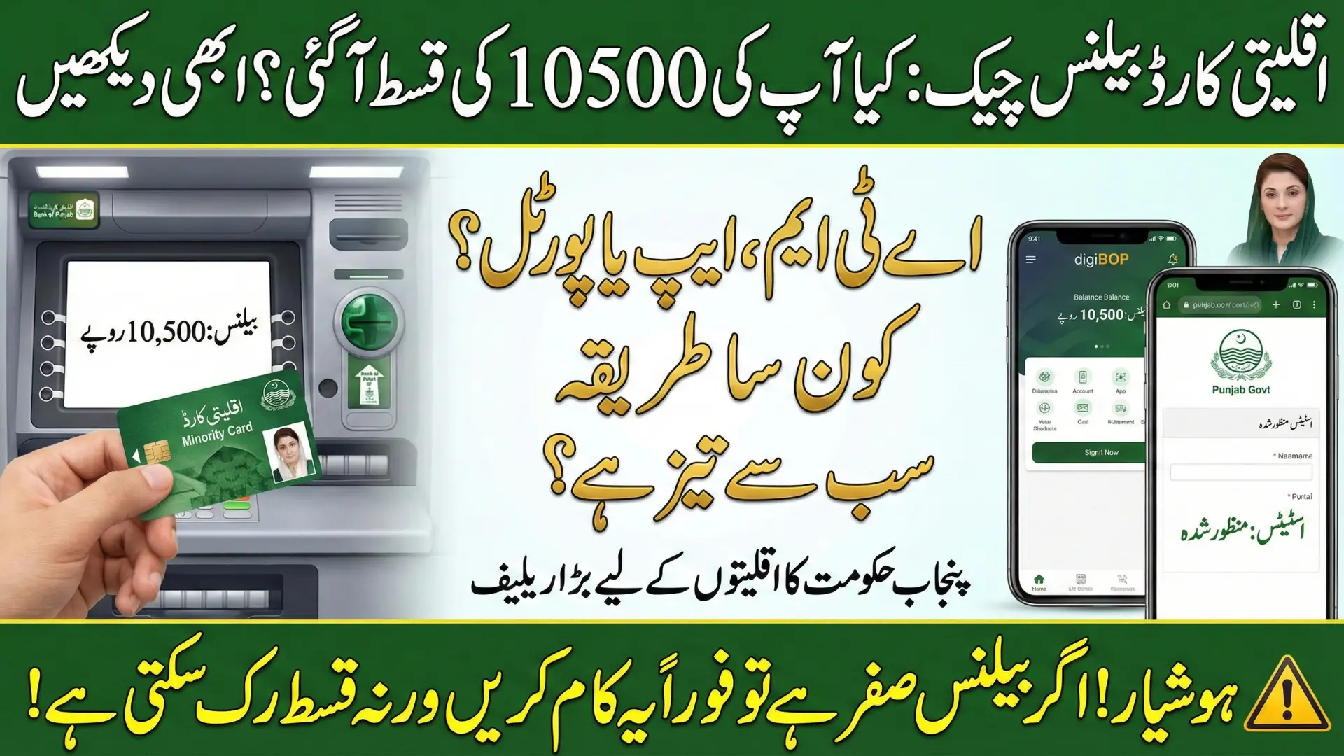 Minority Card check balance for the latest Rs 10,500 payment can now be done easily in Punjab through official channels. Beneficiaries of the CM Punjab Minority Card can verify their quarterly installment using a Bank of Punjab ATM, the digiBOP mobile app, or the HR&MA online portal by entering their CNIC. SMS alerts are also sent when funds are credited.
