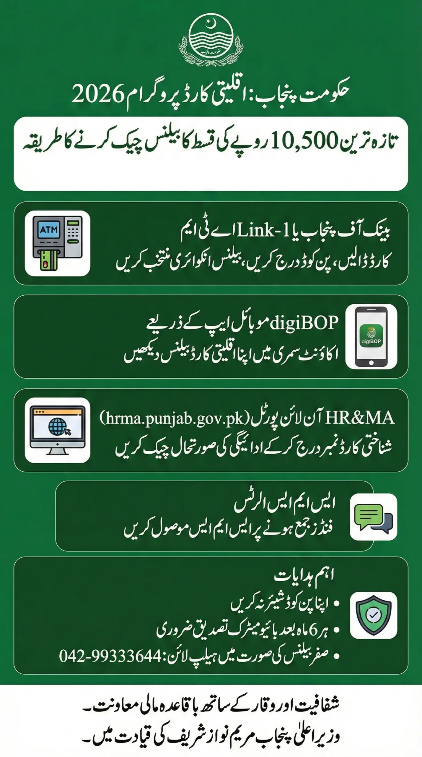 Launched under CM Maryam Nawaz Sharif, this program provides regular financial support to minority families with transparency and dignity. Cardholders are advised to protect their PIN, complete biometric verification, and contact official helplines if their balance shows pending or zero.