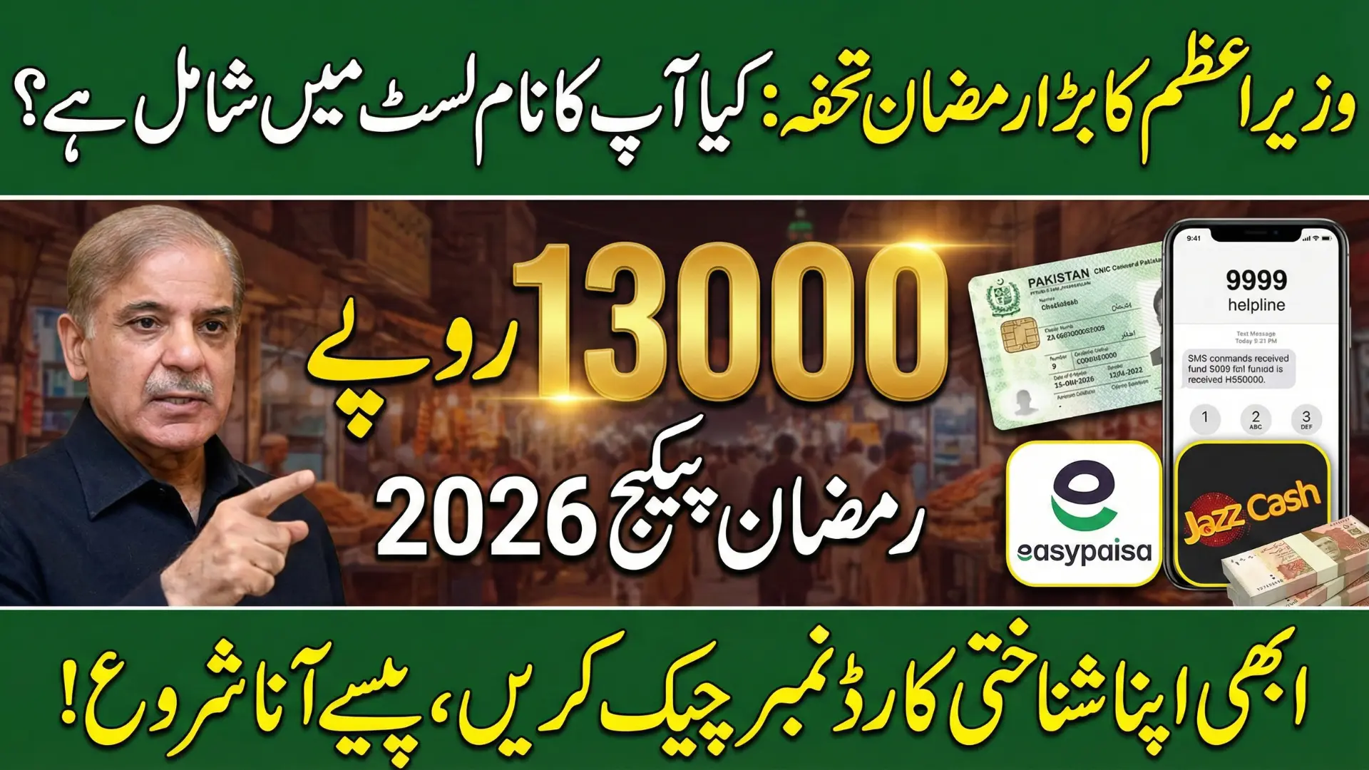 PM Ramzan Package 13000 Begins offering Rs. 13,000 cash assistance to eligible low-income families across Pakistan. Under the Prime Minister Ramzan Package 2026, beneficiaries can check CNIC-based eligibility through the official PM Ramzan package portal or by calling the 9999 helpline if they don’t have internet access.