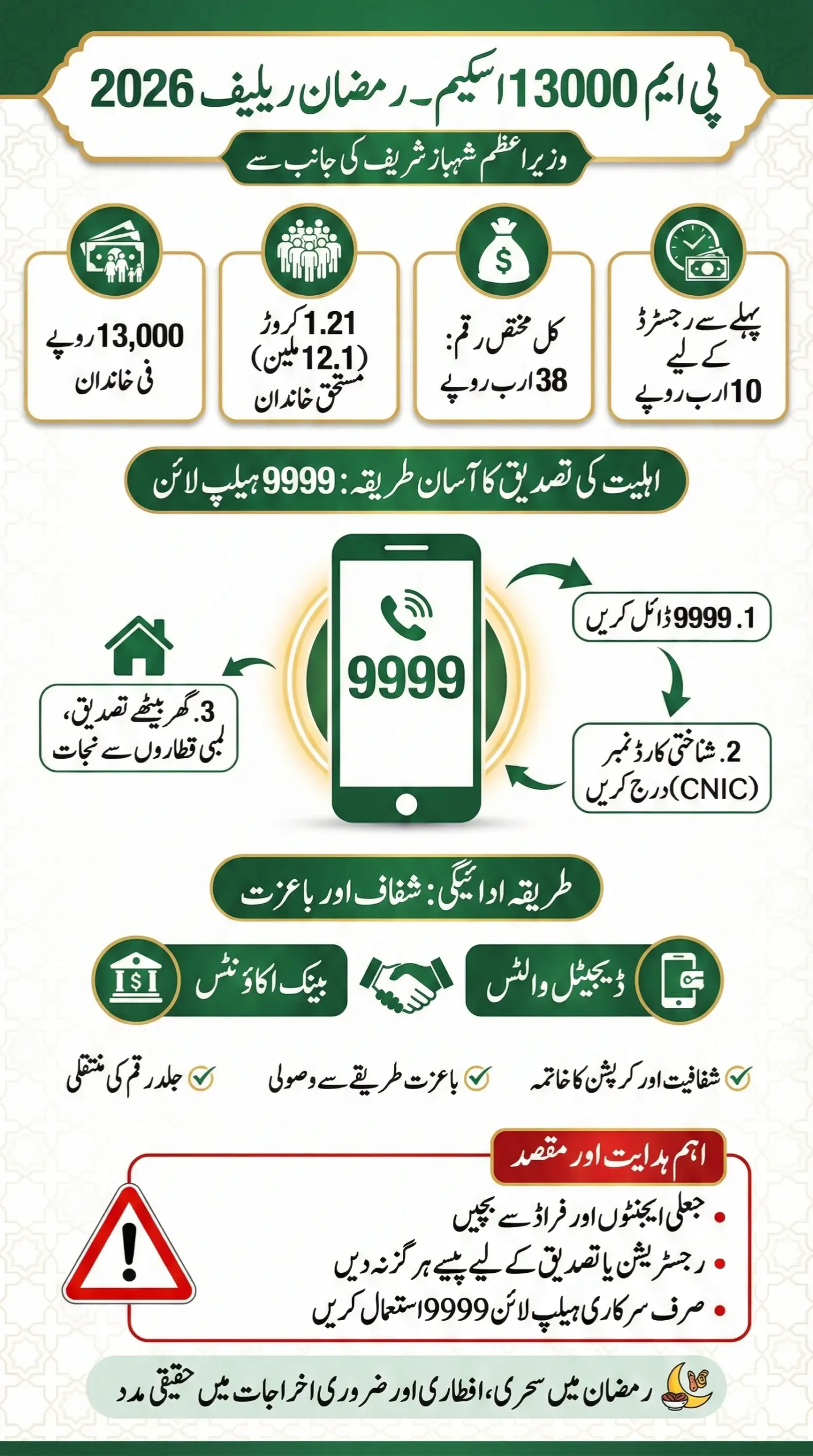 To answer this, the government has introduced the PM Ramzan Package 13000 verification process via 9999 helpline. This step is meant to reduce confusion and stop people from falling into traps of fake agents and scams.