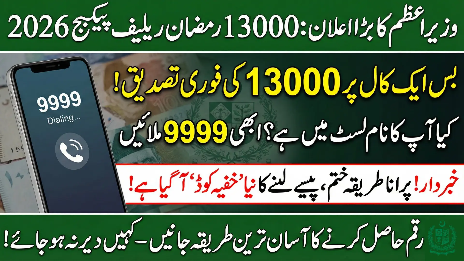 Dial 9999, enter your CNIC, and complete the PM Ramzan Package 13000 verification process to check eligibility.