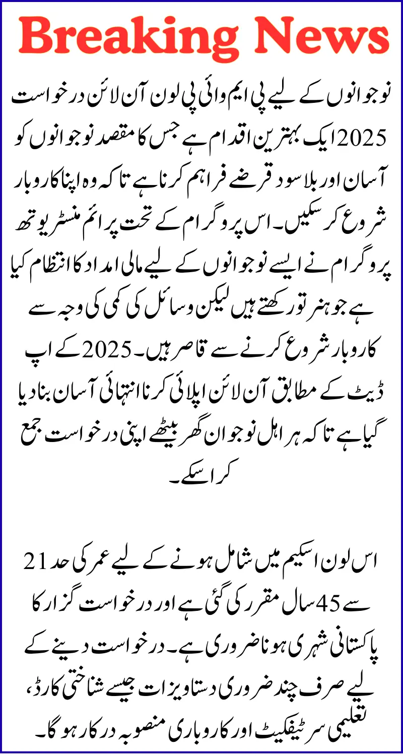 The age limit for joining this loan scheme has been set from 21 to 45 years and the applicant must be a Pakistani citizen. Only a few necessary documents such as identity card, educational certificates and a business plan will be required to apply. After filling the online form, the applicant has also been provided with the facility to check the status so that they can know at what stage their application is. This transparent and simple process has been introduced especially to make the youth independent.
