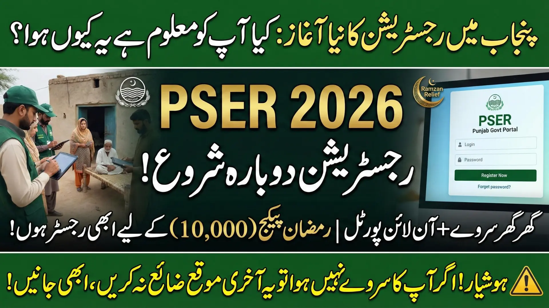 PSER 2026 registration has officially restarted in Punjab, with a door-to-door survey and an online portal to include families who were missed earlier. The Punjab Socio-Economic Registry is now the main system used to decide eligibility for Ramzan cash payments, subsidies, and future welfare schemes.