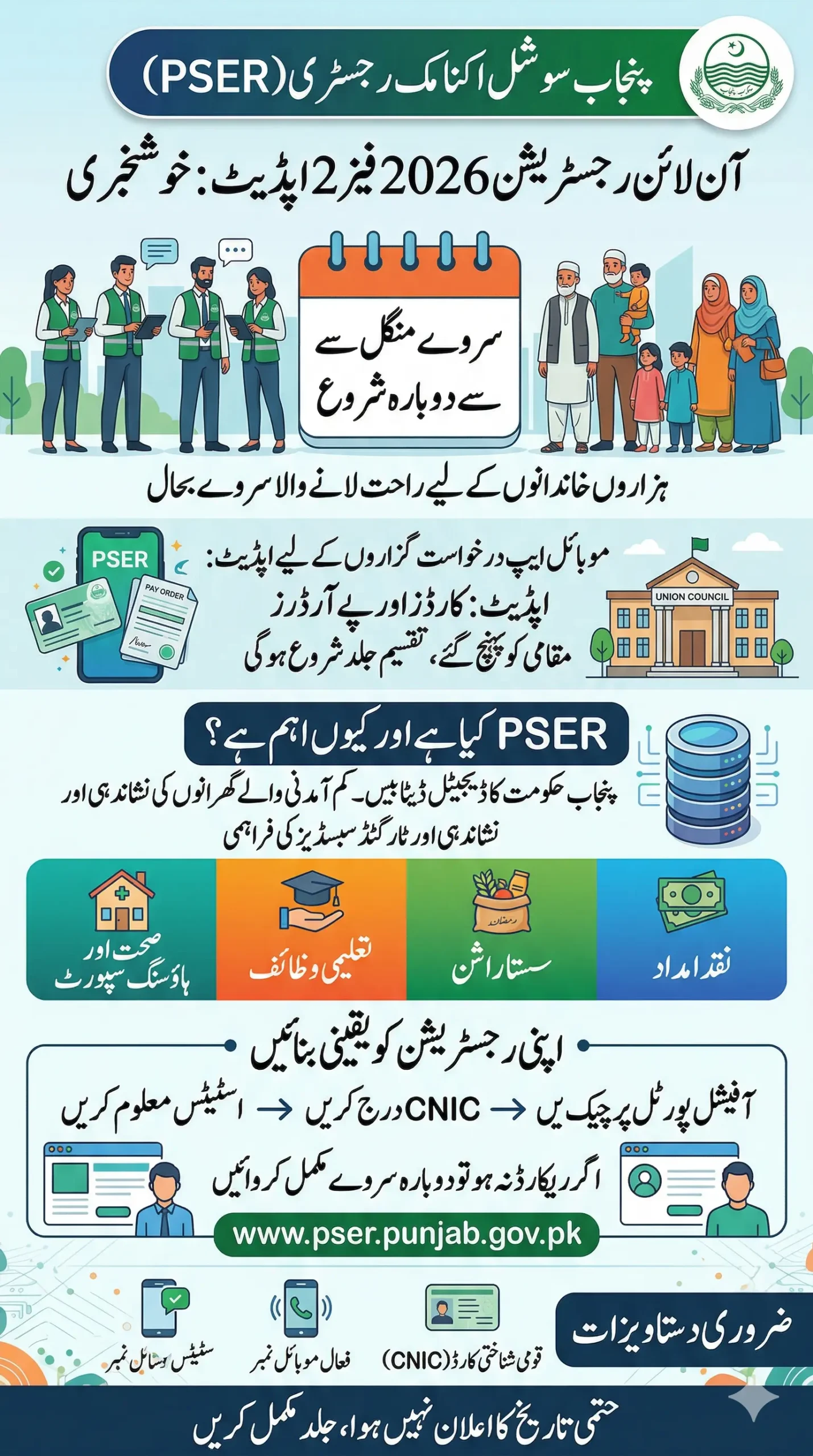 In 2026, the PSER database has become one of the main gateways to government welfare programs in Punjab. If a family is not registered in PSER, it may miss out on multiple support programs announced by the government.