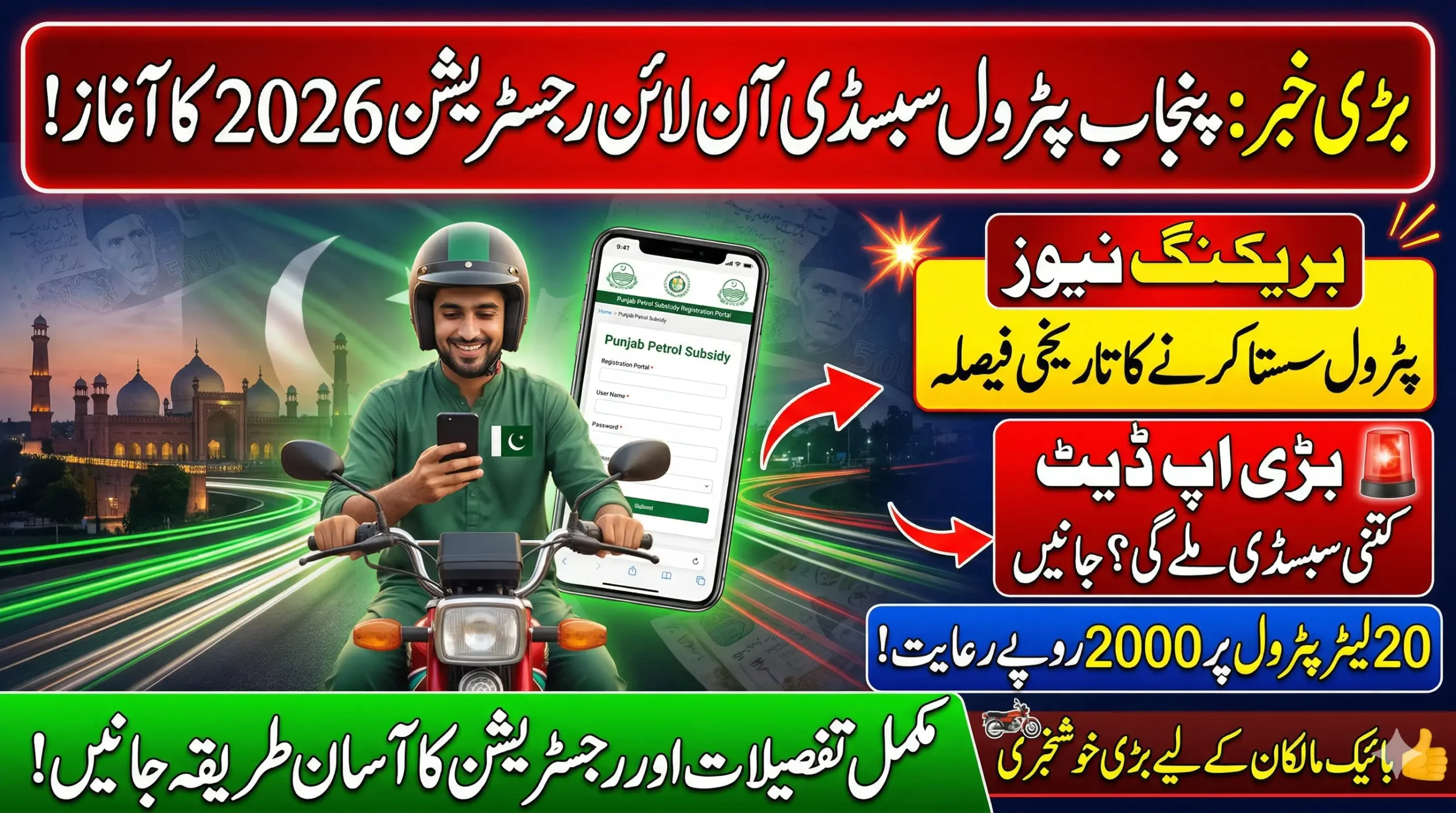 If you want to benefit from the subsidy, you must complete the online registration through the Punjab Petrol Subsidy Web Portal.