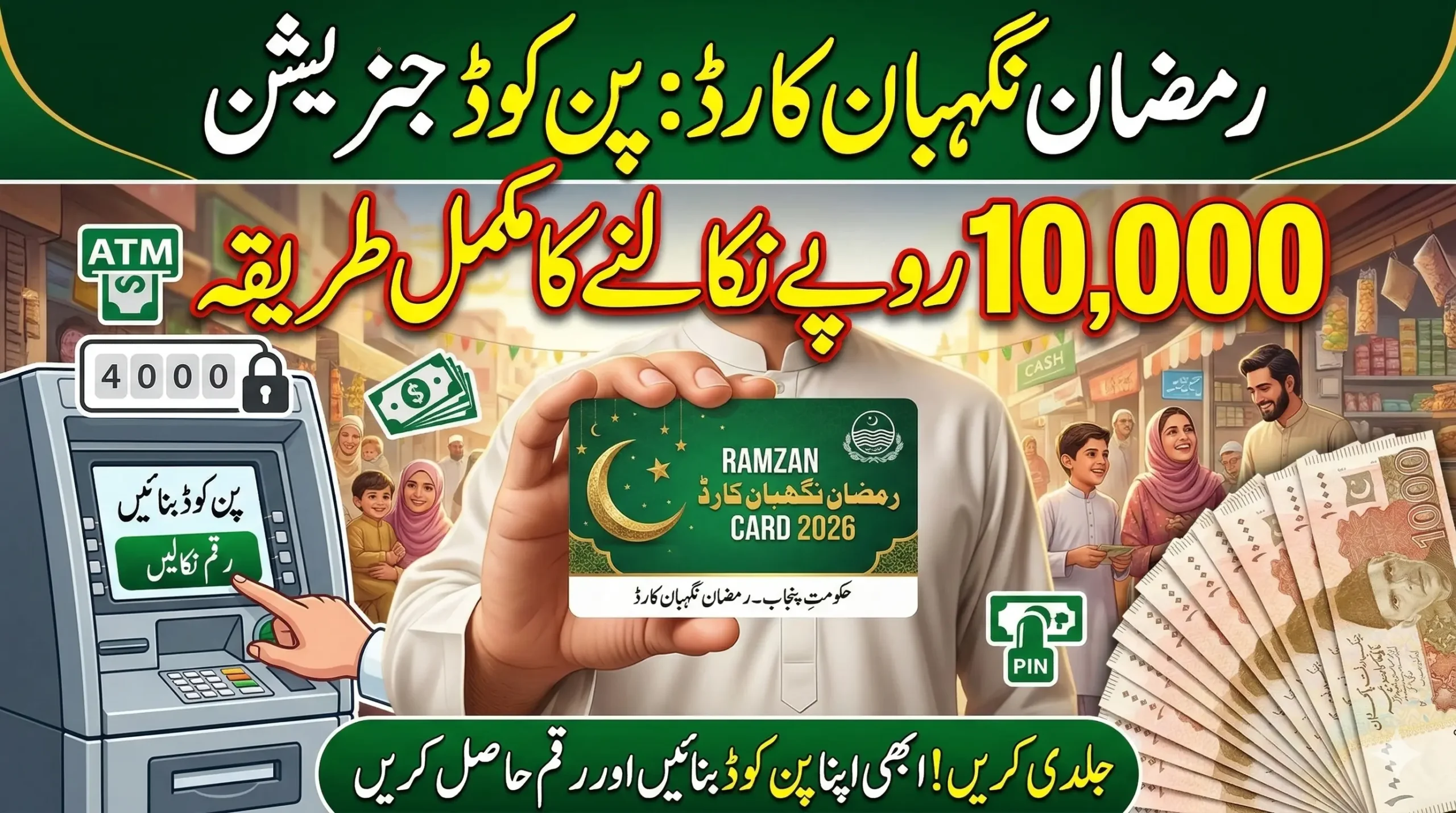 The Ramzan Nigehban Card PIN Code 2026 is required to activate the government assistance card and withdraw the Rs 10,000 Ramadan relief payment. Beneficiaries must first generate a secure 4-digit PIN at an authorized ATM using their CNIC for verification. Once the PIN is successfully created, the card becomes active and users can withdraw the full amount through ATM machines.