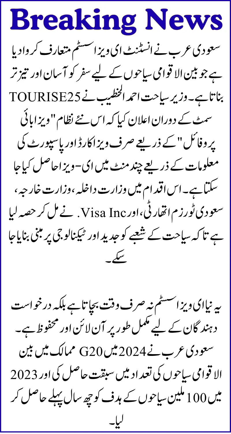 In a major step toward tech-driven tourism, Saudi Arabia introduces instant e-visa system, allowing eligible travelers to obtain an electronic tourist visa within minutes. This innovative initiative, known as Visa by Profile, was announced by the Minister of Tourism, Ahmed Al-Khateeb, at the TOURISE25 Summit in Riyadh.