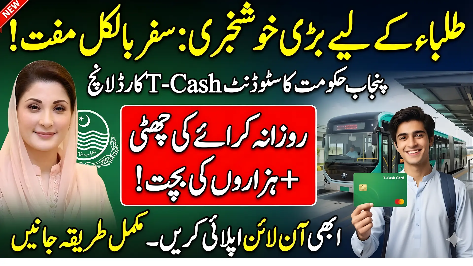 The Student T-Cash Card is a digital travel card launched by the Punjab Government to provide free or discounted travel for students in selected cities. This smart card acts like a prepaid transport card and can be used on buses and metro services across designated areas.