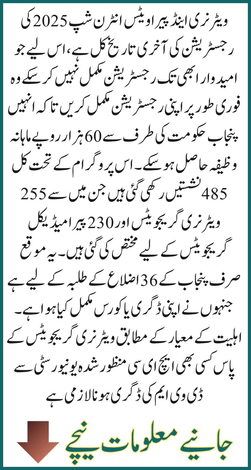 The last date to join the Punjab Private Vets and Veterinary Internship Program is tomorrow, so complete the registration process. The big advantage of completing it is that you will be given a monthly stipend of 60 thousand, which is a good initiative by the Punjab government. If you have not completed the registration process yet.