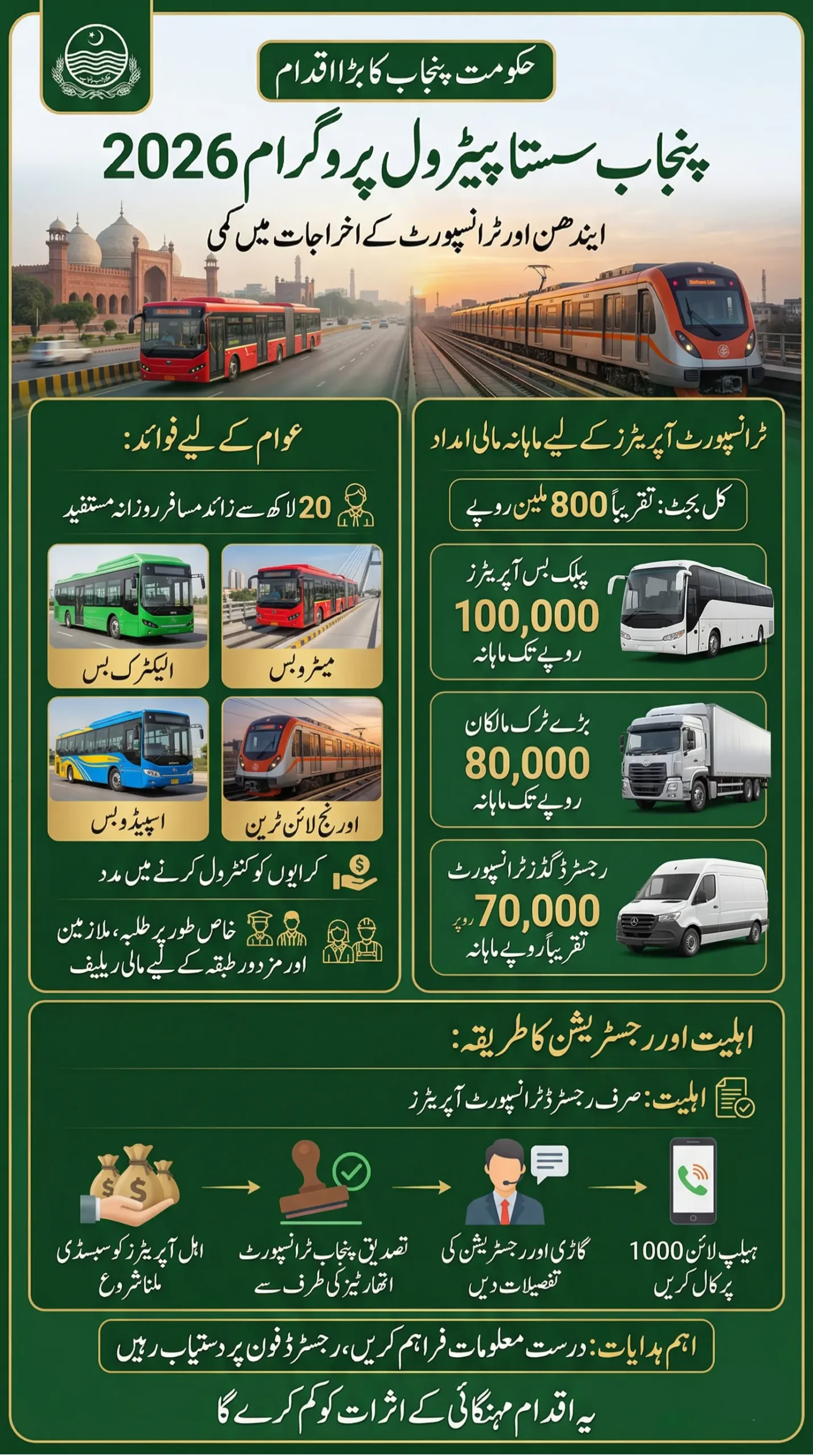 With over two million people benefiting daily, the program has the potential to make a real difference in everyday life across Punjab. Transport operators are encouraged to complete their registration through the official helpline and ensure they receive the available subsidy support.
