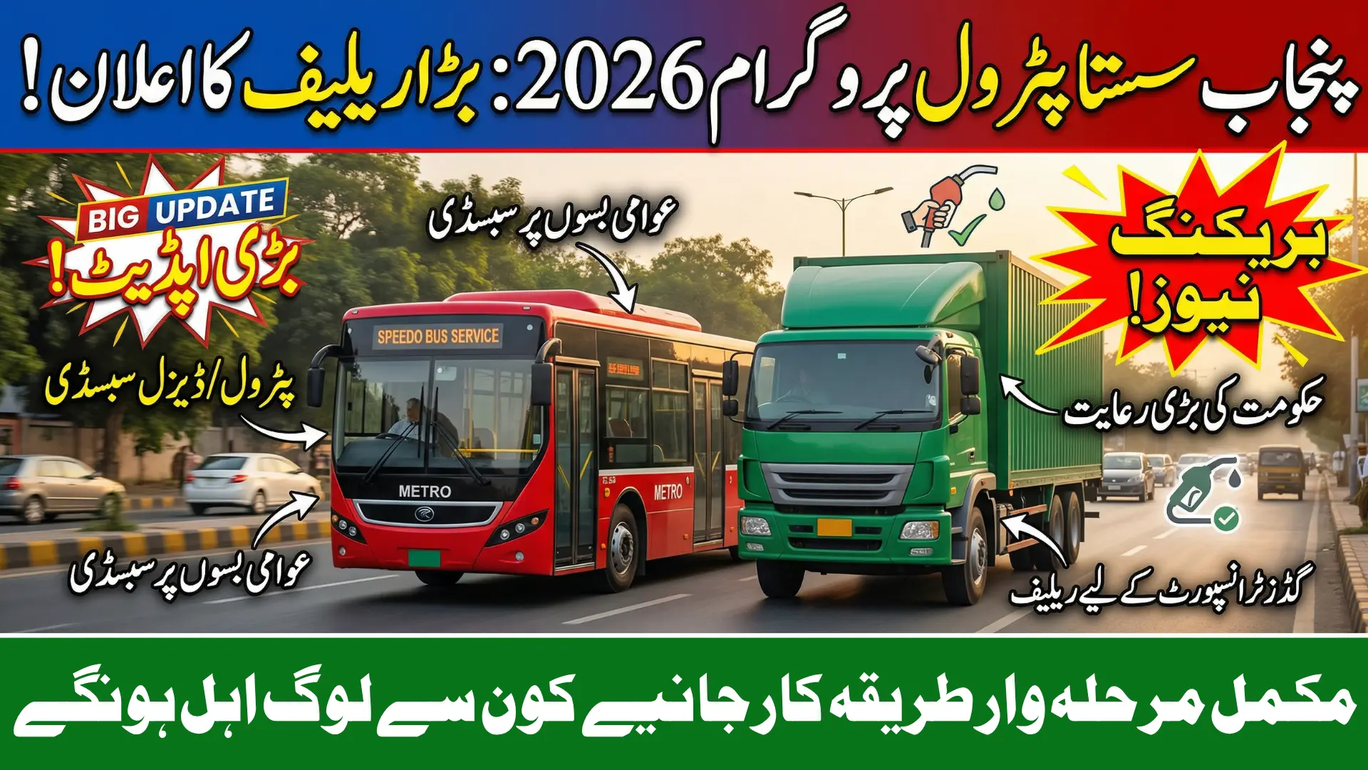 The program includes support for buses, trucks, and goods transport, along with relief for public transport systems like Metro Bus, Speedo, Electric Bus Service, and the Orange Line Train. In this guide, you will learn who can benefit, how the subsidy works, how to register through the official helpline, and what real advantages this program offers to citizens in 2026.