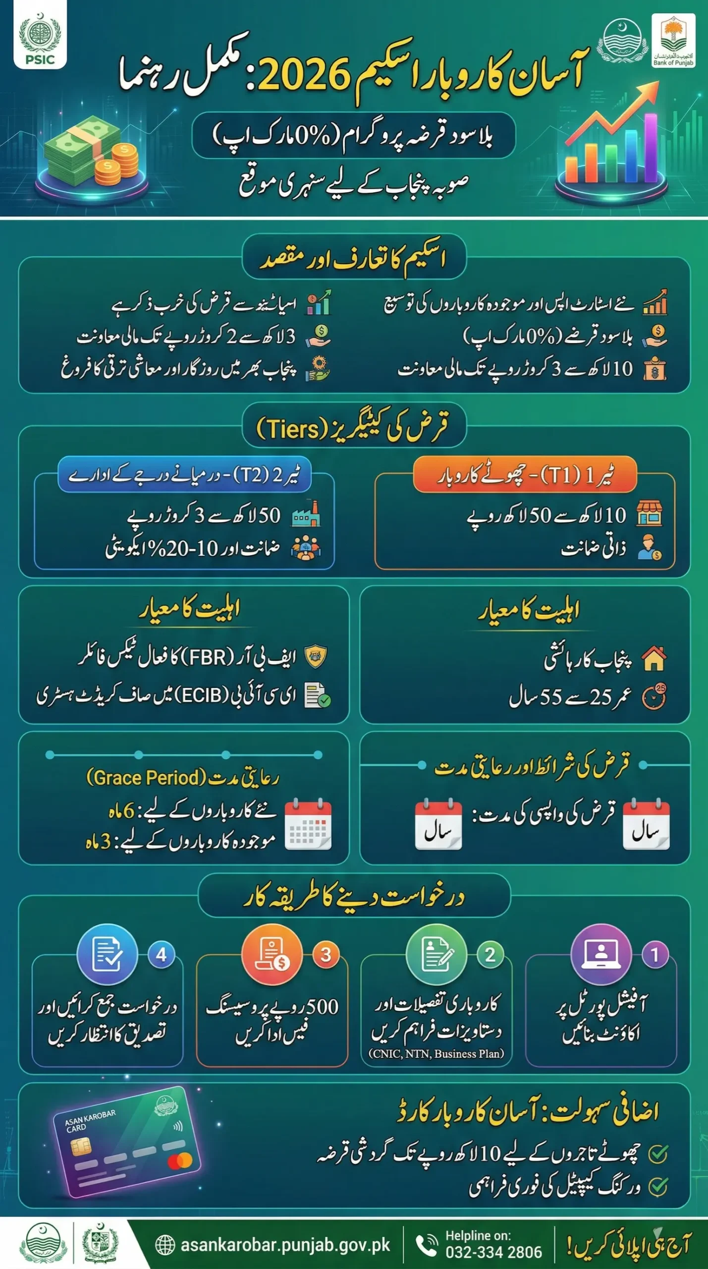 Alongside the Asan Karobar Scheme 2026, another facility is also being offered to small entrepreneurs. The Asan Karobar Card provides up to PKR 1 million in revolving credit.